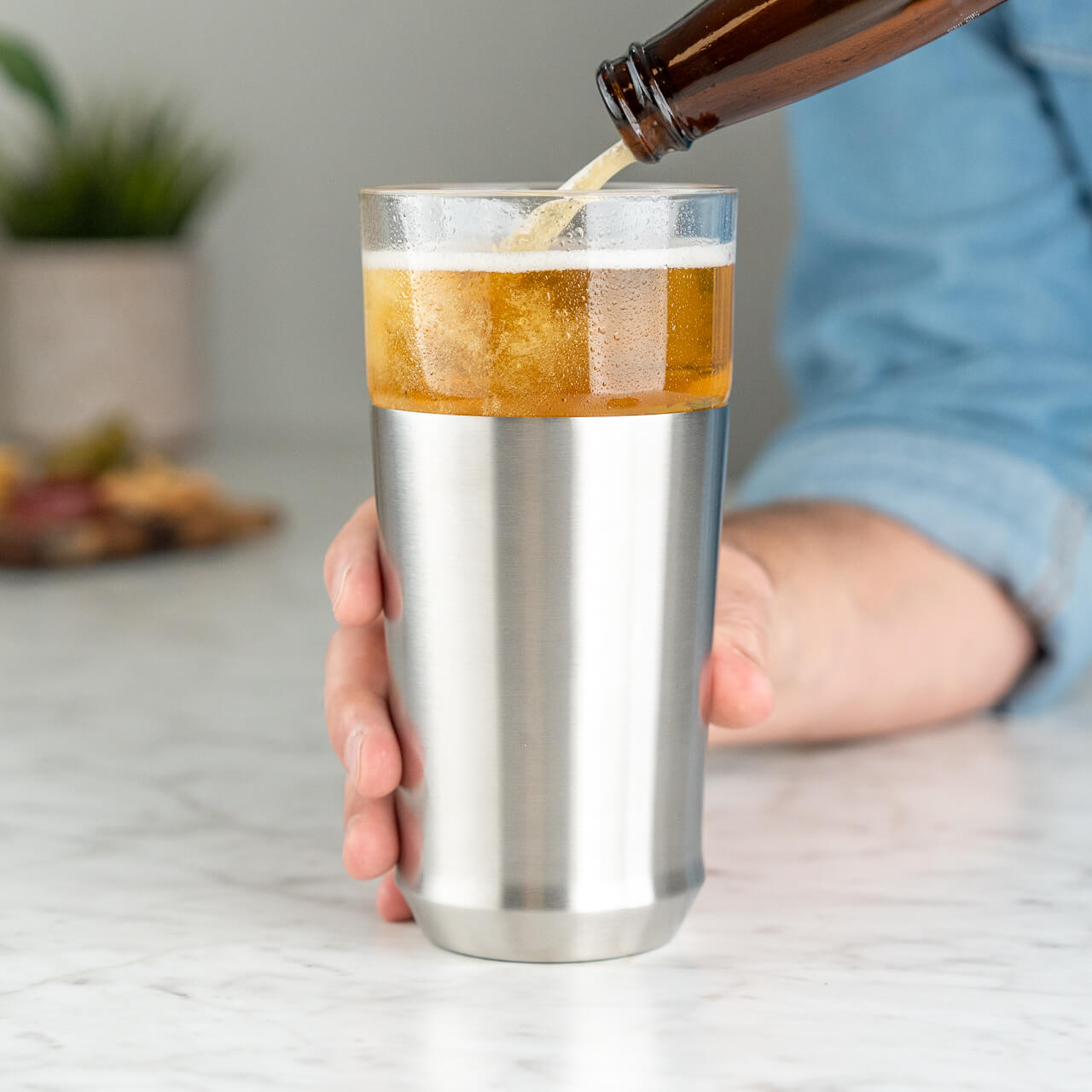 The chillable glass insert paired with the vacuum insulated steel base allows for maximum temperature control for every craft beer. Whether you like to keep your beer fridge at a precise temperature or you just prefer a frosty glass, the Hybrid Pint Glass delivers the goods.